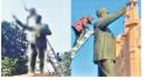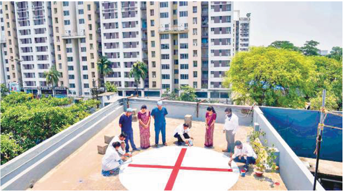 भारत-पाकिस्तान के बीच तनाव के मद्देनजर महत्वपूर्ण स्थलों की सुरक्षा सुनिश्चित की जा रही है। इस क्रम में कोलकाता में एनएससीबीआई हवाई अड्डे के पास एक अस्पताल की छत पर लाल क्रॉस का चिन्ह बनाते श्रमिक।
