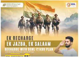 टेलीकॉम कंपनी बीएसएनएल ने सेना के सम्मान में एक एन रिचार्ज प्लान को लॉन्च किया है. इसका उद्देश्य ऑपरेशन सिंदूर के दौरान सेना की बहादुरी को सलाम करना है. इसके तहत यूजर के हर रिचार्ज से कुछ पैसा रक्षा विभाग को दान में दिया जाएगा. इसके अलावा यूजर को कैशबैक का भी फायदा मिलेगा. बीएसएनएल ने इस ऑफर को सीमित समय के लिए शुरू किया है. यदि आप 1499 रुपये का रिचार्ज करवाते हैं तो कंपनी इस राशि का 2.5 प्रतिशत रक्षा विभाग को दान करेगी. साथ ही यूजर को अपने रिचार्ज का 2.5 प्रतिशत कैशबैक के रूप में भी वापस मिलेगा. हालांकि यह ऑफर 30 जून तक ही उपलब्ध है। बीएसएनएल के 1499 रुपये वाले इस प्लान कीटेलीकॉम कंपनी बीएसएनएल ने सेना के सम्मान